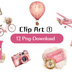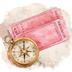 水彩画風ピンクのアンティーク旅行クリップアートセット(PNG形式/9種類)