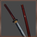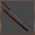 映える朱色に金の装飾、鍔には菊花紋の透かし彫りが施され、刀身は揺らぐ炎の様相。燃ゆる秋を想わせる一振りである。
