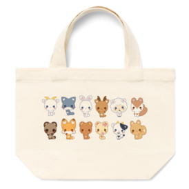 12匹のゆかいな仲間たちが勢ぞろいした、可愛くて楽しいトートバッグSです。こちらはロゴ無しです。