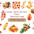 秋の紅葉のイメージ 水彩画風クリップアート16種 PNG形式(背景透過)