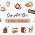 「カフェシリーズ」水彩アンティーク風クリップアート素材15点セット|PNG形式背景透過