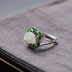 <受注制作>蓮の花のリング - 自然の美しさと職人の技を見事に融合 R436 ※シルバーだけでなく、K10、K18、PT900などでも制作が可能ですので、ぜひご相談ください。 蓮の花をテーマにしたリング、この美しい作品はネフライトで作られた蓮の花を中心に、七宝焼の葉っぱが飾られています。このリングは、自然の美しさと職人の技を見事に融合させています。優しい緑色のネフライトが蓮の花を引き立て、七宝焼の葉っぱが繊細な彩りを加えています。このリングを身につけることで、季節を問わず蓮の花の静かな美しさを感じることができるでしょう。特別な日の贈り物や、自分自身へのご褒美としても最適です。この作品は、自然への敬意と美へのこだわりが詰まった、唯一無二のアクセサリーです。 制作期間:1〜3週間 なるべく早く手元に届くよう、丁寧かつスピーディーに制作しています。 ご了承ください。 素材:スターリングシルバー、ネフライト サイズ:花部分9*12㎜、モチーフ部分17*19㎜ ----------------------------------------------------------------------------- ※ 製品のカスタマイズが可能 当店では、お客様がより自分らしいジュエリーを手に入れることができるよう、既存の商品をカスタマイズすることが可能です。 例えば、お好みの宝石に変更することや、デザインパーツを追加することができます。また、新しいデザインのジュエリーをフルオーダーすることも可能です。 お客様のご要望に合わせたご提案を行っておりますので、お気軽にご相談ください。私たちは、お客様が長く愛用できるジュエリーを提供することをお約束いたします。 ------------------------------------------------------------------------------ ※ 注意事項 制作開始後のご返金・発送後のご返品・返金には対応できません。 モニター環境によって実物と色の違いが生じる場合があります。 温泉では、硫化の恐れがあるため、外して入浴することをおすすめします。 メッキ物は汗や水などに弱いため、使用後柔らかい布で拭き取ってください。 酸化防止のために空気やほこりに触れないように保管してください。 運動やシャワーの時なるべくつけないでください。