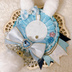 ご覧頂きありがとうございます☺︎ あんさんぶるスターズより Ra*bits のアルバム衣装をイメージして制作したロゼットです。 痛バなどに着けて一緒にお出かけして頂けたら嬉しいです✨️ 【対応サイズ】 57mm缶の装着を想定してデザイン、制作しております。 上記以上の缶バッジですと一部見え方が変わる場合がございます。 【装着方法】 ●缶バッジ 真ん中フェルト上部にある落下防止用のリボンループに缶バッジの安全ピンを通して頂いてから、磁石にくっつけてご使用下さい。 ●本体 裏にブローチピンがついております。 また、裏面上部には丸カンも付いておりますのでそちらにボールチェーンなどを通してご使用頂く事も可能です。 ⚠︎注意⚠︎ 丁寧に制作しておりますが、すべて素人のハンドメイド作品となります。 個体差がありますのでご理解の上、ご購入をお願いいたします。 また、一部グルーガン・接着剤を使用しております。グルーのはみ出しや強度が不十分な場合がございます。ご了承ください。 お気に召して頂けたら幸いです🌱