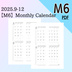 M6サイズのシステム手帳で使う マンスリーカレンダーのPDFデータです。 ひと月をひと目で見渡せるマンスリーページ 予定やイベントをすっきり書き込める大きめマスには 余白を使って日記やスタンプ、シールでデコレーションも◎ 手帳で人生がうまくいく🐎 ☆☆☆___☆☆☆___☆☆☆ 【 注意事項 】 ①本商品はPDFファイルでのご用意です。 お客さまご自身で印刷、カット、 穴あけをしていただく必要があります。 ②ダウンロード商品のため、 いかなる理由であっても 返品・返金対応はいたしかねます。 ③著作権はCcraftにあります。 複製、改変、再配布、再販売を禁止します。 個人利用の範囲でご使用ください。 ④本商品に不具合が判明した場合は、 修正データを配布いたします。 ⑤本商品のダウンロードによる ご自身の端末内での不具合等について、 当方では一切責任は負いかねます。 ⑥ご利用環境によって 多少のサイズ誤差が生じます。 ご理解の上でご利用ください。 また、印刷方法についてのサポートは 行っておりません。 ●印刷用紙サイズ:A4 ●リフィルサイズ:M6( 80mmx126mm )
