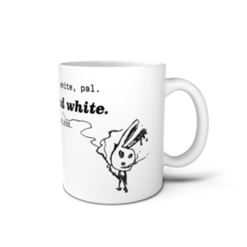 マグカップ - 直径 8 cm / 高さ 9.5 cm"It ain't black or white, pal. It's black and white. And you're spineless." 「白か黒かではなく白と黒なのだ臆病者め」 ウサギたちの挽歌シリーズ–––マグカップ *この商品はpixivFACTORYで作られた商品です。サンプル画像は完成イメージのため、実物と異なる場合があります。