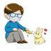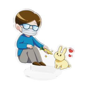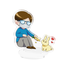 ペットとたわむれる怪しい男のアクリルスタンドです。