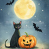 ハロウィンポスター A4|黒猫・かぼちゃランタン 水彩デジタルアート PNG印刷用