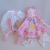 -----* 商品について *----- 【 セット内容 】 ・ワンピース ・うさみみカチューシャ ・ドロワーズ ・ソックス ・レースカフス 以上 5点セットになります。 その他のドール本体や、撮影用の小物などは商品には含まれません。 babykumakoの2.0ボディを基準に制作しました。 ぴったりサイズで仕立てましたので、 babykumako旧ボディやtinyfoxなどは着られない可能性がございます。 -----* 商品詳細 *----- 【 ワンピース 】 後ろスナップどめのワンピースです。 身頃部分に裏地あり。 【 うさみみカチューシャ 】 中に固めの鉄の芯が入っています。 サイズがきつかったり、ゆるかったりした場合は、少し曲げて調節できます。 【 ドロワーズ 】 ウエストはゴムです。 【 ソックス 】 伸縮性のあるレースで作った靴下です。 【 レースカフス 】 伸縮性のあるレースに、ゴム糸でピンクと白のパールビーズを縫い付けています。 -------------------------------------------------------- * その他 * ・ 写真と実物で色味に違いがでることがあります。 ・ 柄物の生地を使っている作品は、柄の位置が写真と異なる場合があります。 ・ ロックミシンと家庭用ミシンを使用し、所々手縫いをしています。 ・ 同居人に喫煙者はおりません。 ・ 猫を飼っています。作業部屋には入れませんが、 アレルギーの方や、気になる方には購入をお勧めしません。 ・ 心を込めて丁寧に制作しましたが、すべて個人が独学で作ったものです。プロの作品には及ばない点があるかもしれません。 ・ 商品に関してご不明な点がありましたら、お気軽にお問合せください。 【発送に関して】 あんしんBOOTHパックで発送します。 複数の商品を別々の会計でご注文頂いた場合、商品の同梱発送ができません。その場合は送料が重複して掛かってしまいますので、ご注意ください。 --------------------------------------------------------