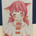 官製はがきサイズ(14.8cm×10cm)のアナログ作品です。 1点ものですので在庫切れの際は何卒ご容赦ください。 身近に置いて可愛がっていただけますと大変幸いです。 === タイトル「にっこにこ」 目じりをさげてとびきりの笑顔を見せているねこみみちゃんです。 りんごのような真っ赤なほっぺが幼い子らしくかわいいかなと思います。