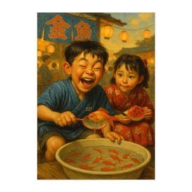 昭和レトロな夏祭り – 金魚すくいと笑顔ポスター