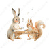 【🌲 ♪ 森の音楽会 / 動物たちの演奏会 ♫】水彩クリップアート * 20点セット(PNG背景透過)