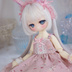 -----* 商品について *----- 【 セット内容 】 ・ワンピース ・うさみみカチューシャ ・ドロワーズ ・ソックス ・レースカフス 以上 5点セットになります。 その他のドール本体や、撮影用の小物などは商品には含まれません。 babykumakoの2.0ボディを基準に制作しました。 tinyfox (1/6新ボディ)も着用いただけます。 babykumako(旧ボディ)やtinyfox(旧ボディ)などは着られない可能性がございます。 -----* 商品詳細 *----- 【 ワンピース 】 後ろスナップどめのワンピースです。 身頃部分に裏地あり。 【 うさみみカチューシャ 】 中に固めの鉄の芯が入っています。 サイズがきつかったり、ゆるかったりした場合は、少し曲げて調節できます。 【 ドロワーズ 】 ウエストはゴムです。 【 ソックス 】 伸縮性のあるレースで作った靴下です。 【 レースカフス 】 伸縮性のあるレースに、ゴム糸でピンクと白のパールビーズを縫い付けています。 -------------------------------------------------------- * その他 * ・ 写真と実物で色味に違いがでることがあります。 ・ 柄物の生地を使っている作品は、柄の位置が写真と異なる場合があります。 ・ ロックミシンと家庭用ミシンを使用し、所々手縫いをしています。 ・ 同居人に喫煙者はおりません。 ・ 猫を飼っています。作業部屋には入れませんが、 アレルギーの方や、気になる方には購入をお勧めしません。 ・ 心を込めて丁寧に制作しましたが、すべて個人が独学で作ったものです。プロの作品には及ばない点があるかもしれません。 ・ 商品に関してご不明な点がありましたら、お気軽にお問合せください。 【発送に関して】 あんしんBOOTHパックで発送します。 複数の商品を別々の会計でご注文頂いた場合、商品の同梱発送ができません。その場合は送料が重複して掛かってしまいますので、ご注意ください。 --------------------------------------------------------