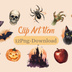 水彩レトロ ハロウィンクリップアートセット PNG | ゴースト・かぼちゃ・キャンディ・スパイダーなど全12種類