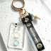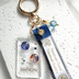 坂本刀・源氏兄弟・伯仲をイメージして製作したキーホルダーです。 こちらの説明をご参照&ご了承の上でご購入下さい。 ①坂本刀(陸奥守&肥前) ②源氏兄弟(髭切&膝丸) ③伯仲(長義&国広) 全長約11㎝ ガラス付きパーツ横×縦 28mm×50mm 【ガラス付きパーツについて】 アクリルプレートとガラスカボションを使用したパーツです。 アクリルプレートにガラスを接着後、コーティングをしています。 出来るだけ補強をしておりますが、市販品程の 強度はございませんのでご注意下さい。 手作業で表面コーティングをしているためパーツ表面に多少の凹凸や小さい気泡が入っている場合がございます、予めご了承下さい。 黄変しにくいレジンを使用していますが、 経年劣化により変色する恐れがございます。 気になる方はご購入をお控え下さい。 ※ カニカンが付いているので取り外し可能です 【リボンパーツについて】 リボンの印字部分を長時間の直射日光に当て続けると熱で文字が薄くなる可能性がございます。 普通にお使い頂く分には問題ございませんが、長時間の直射日光を避けて保管&ご使用頂きますようお願い申し上げます。 印刷の関係上、文字や刀紋にスレや印字が薄い部分がある可能性がございます。 細い線が薄く印字されて見えにくい部分がございますので予めご了承下さい。 【ガラスについて】 ガラスパーツにはガラス製のカボションを使用しています。 ガラス製カボションは一点一点手作業で色付けをしているため、模様の出方と色味に個体差がございます。 作品の個性としてお楽しみ頂けましたら幸いです。