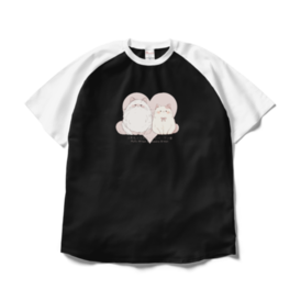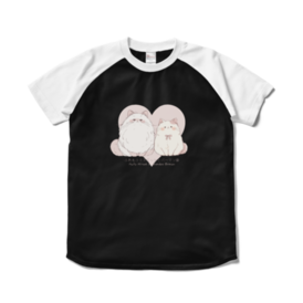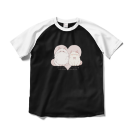 〖ふわもふミヌエットとバーマン爺〗ラグランTシャツ ブラック×ホワイト