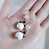 1ペアのみ☆幻想的なネコ型のとんぼ玉ビーズとチェコビーズのピアス/イヤリング(ホワイト)