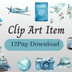 このクリップアートセットで、旅の楽しさとレトロな可愛さをデザインにプラスしてみませんか?