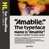 書体名は「Amabile(アマービレ)」。音楽用語で「愛らしく」という意味があります。