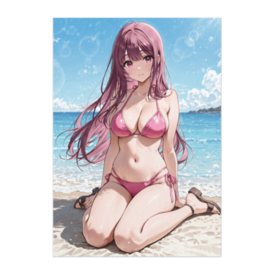 この商品はpixivFACTORYで作られた商品です。サンプル画像は完成イメージのため、実物と異なる場合があります。 澄み渡る青空と波打ち際を背景に、ピンクのビキニ姿で微笑む美女を描いたイラストポスターです。鮮やかな夏の海辺の雰囲気をそのまま切り取ったような一枚で、空間に華やかさと爽やかさをプラスしてくれます。お部屋のインテリアやコレクションにおすすめです。