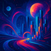 赤き月に照らされ浮かぶ、幻の未来都市。