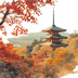 京都の伝統と風情がモチーフの、水彩画のクリップアート素材 PNG9セット