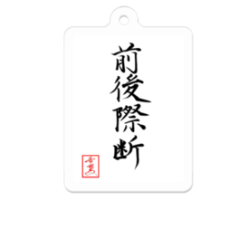 『前後際断』キーホルダーです。 星野希望・書『前後際断』 今好きな言葉。 「前後際断」 やり直せない過去を引きずるのも、 考えてもどうしようもない未来のことを心配することなく、 過去も未来も断ち切り、今にすべてを集中すること。 今を生きるということ。