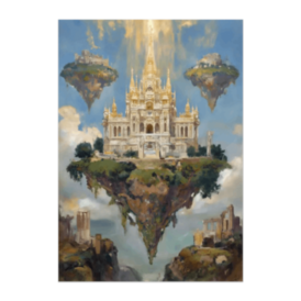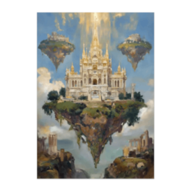 この商品はpixivFACTORYで作られた商品です。サンプル画像は完成イメージのため、実物と異なる場合があります。 雲海に浮かぶ神秘の島、その上に立つ黄金の神殿。光に包まれた幻想的な風景を油彩風で描いたファンタジーポスターです。