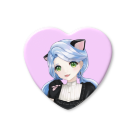 ハート缶バッジ 黒猫