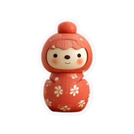 こけしちゃんステッカー(赤花)100㎜×100㎜こけしちゃんステッカー(赤花)100㎜×100㎜