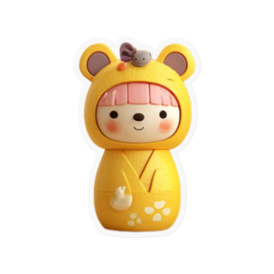 こけしちゃんステッカー(黄花)100㎜×100㎜こけしちゃんステッカー(黄花)100㎜×100㎜