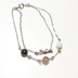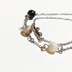 猫探しミッションをモチーフにしたブレスレット。 黒猫・三毛猫・白猫をイメージした天然石(ルチルクォーツ、マザーオブパール)をあしらい、愛らしい猫の姿をチェーンに忍ばせました。 二重のシルバーチェーンは上品さを添えつつ、猫と出会う小さな冒険を表現しています。 手元にそっと寄り添う猫たちと、一緒にお出かけしてみませんか。 サイズ:約15cm 《ブレスレット注意点》 ★一つ一つ手作りのため、見本より色味に若干の違いなどあるかと思いますが、ご了承下さい。 ★金属パーツは海外製品のものを使用しておりますので、ごく稀にわずかな初期傷や汚れなどあるかと思いますが、ご了承下さい。 ★樹脂粘土パーツも含め、全てがハンドメイド品ですので、完璧を求める方は御遠慮ください。 ★劣化を少しでも抑えるために使用後は金属部分を軽く拭き汚れを落とし、日光の当たらない場所に保管してください。 ★レジン液、金属等のアレルギーをお持ちの方は購入をご遠慮ください。 また、当方猫を飼っております。細心の注意を払っておりますが、静電気等で猫毛が混入する場合があります。 購入後に万が一アレルギー反応が出てしまった場合、一切責任を負え兼ねますので、ご了承ください。