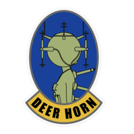 ステッカー - 100 x 100 (mm)オリジナル作品、DEER HORNのミリタリーワッペン風ステッカーです。 余白部分はクリアとなります。 防水仕様ですので屋外でも使用できます。