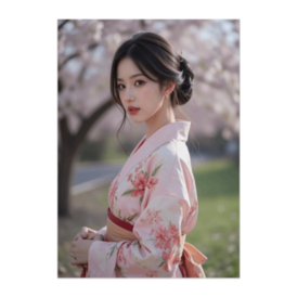 この商品はpixivFACTORYで作られた商品です。サンプル画像は完成イメージのため、実物と異なる場合があります。 満開の桜を背景に、花柄の着物を纏った女性を描いたポスター作品。春の華やかさと日本の伝統美を融合させた一枚で、空間を優しく彩ります。