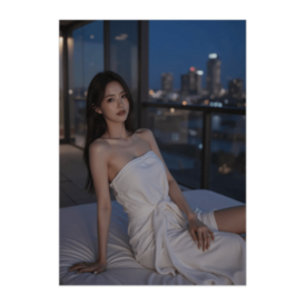 この商品はpixivFACTORYで作られた商品です。サンプル画像は完成イメージのため、実物と異なる場合があります。 高層ビルの夜景を背景に、白いタオルを纏った女性を描いたポスター作品。都会的でありながらリラックスした雰囲気が漂う一枚です。