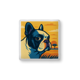 夕暮れのサバンナに佇むフレンチブルドッグ。 ポップアート調で描かれたそのまなざしは、どこか哲学的で、見る人の心に静かな問いを投げかけます。 「優しい逆転」というブランドコンセプトのもと、日常に余白と物語を添える一枚。Tシャツやグッズとして展開することで、“着る問い”としての存在感を放ちます。▼おすすめ用途:• 展示・ギャラリー空間のアクセントに • SNS投稿やアイコン素材に • 哲学的なメッセージを込めたギフトに