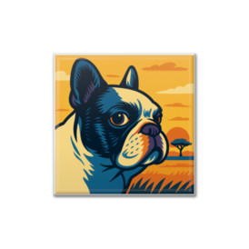 夕暮れのサバンナに佇むフレンチブルドッグ。 ポップアート調で描かれたそのまなざしは、どこか哲学的で、見る人の心に静かな問いを投げかけます。 「優しい逆転」というブランドコンセプトのもと、日常に余白と物語を添える一枚。Tシャツやグッズとして展開することで、“着る問い”としての存在感を放ちます。▼おすすめ用途:• 展示・ギャラリー空間のアクセントに • SNS投稿やアイコン素材に • 哲学的なメッセージを込めたギフトに