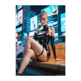 この商品はpixivFACTORYで作られた商品です。サンプル画像は完成イメージのため、実物と異なる場合があります。 未来都市のネオンを背景に黒いドレスで佇む女性を描いたポスター。サイボーグではありませんが、スタイリッシュな構図と都会的な雰囲気が魅力的です。
