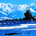 ★雨晴れ海岸・肉筆油彩画・F6キャンバス