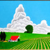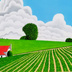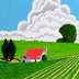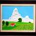 ★美瑛・夏空と赤い屋根の家・肉筆油彩画・F6キャンバス
