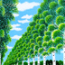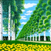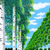 ★白樺並木とタンポポ・肉筆油彩画・F6キャンバス