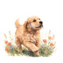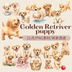 『Golden Retriver puppy(ゴールデンレトリバーの子犬)』 水彩画風 背景透過PNG素材 21点セット