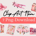 【旅行編】ピンクの水彩・アンティーク風 クリップアート 7点セット