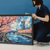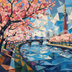 🌸 油絵風|満開の桜と隅田川・スカイツリーを描いた春の風景アート3(JPG) 🎨
