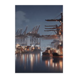 この商品はpixivFACTORYで作られた商品です。サンプル画像は完成イメージのため、実物と異なる場合があります。 夜の港に並ぶクレーンと貨物船。水面に映る灯りが、都市の鼓動を静かに語ります。冷たくも美しい海辺の工業詩を描いたポスターです。