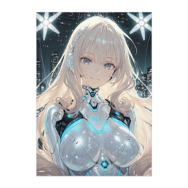 この商品はpixivFACTORYで作られた商品です。サンプル画像は完成イメージのため、実物と異なる場合があります。 未来都市の光に包まれた、白銀のアンドロイド美女。 静かな微笑みと柔らかなネオンの輝きが共鳴する、近未来アートポスター。 青白い光と夜景が織りなす幻想的な世界をお楽しみください。