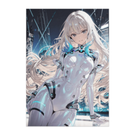 この商品はpixivFACTORYで作られた商品です。サンプル画像は完成イメージのため、実物と異なる場合があります。 輝く都市の屋上に佇む、究極のサイボーグ・ビューティ。 冷たい光と人間らしい表情が交錯する、ハイクオリティなSFアートポスター。 未来を見つめる瞳が印象的な一枚です。