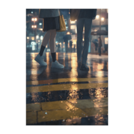 この商品はpixivFACTORYで作られた商品です。サンプル画像は完成イメージのため、実物と異なる場合があります。 雨に濡れた夜の街角、交差点の灯りが路面に映る瞬間。すれ違う人々の足元が静かに語りかけるようなワンシーンを描いたポスターです。静かな緊張とやさしい光が織りなす、現代アニメイラストの情緒。
