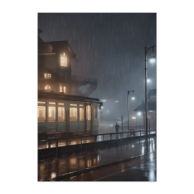 この商品はpixivFACTORYで作られた商品です。サンプル画像は完成イメージのため、実物と異なる場合があります。 列車の灯りが雨に滲む静かな夜。遠くに見える人影と、濡れたプラットフォームが時間の止まったような情景を描きます。雨音まで聞こえてきそうな現代アニメイラスト。