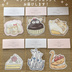 レトロ洋菓子店で見かけるかわいいお菓子&置物をテーマに作成したステッカー。 ノートに貼ったりスマホに挟んだり、そのまま眺めて楽しんだり いろいろ活用していただけたらうれしいです。 🍰COMITIA155から4番「バタークリームのバラケーキ」が仲間入りしました! 【仕様】 紙製のダイカットステッカー。耐水性は無し。 1メレンゲクッキー犬、2たぬきケーキ、5ネコの置物は表面がツルツル。 他はさらさらした手触りです。 【ラッピング】 ・こちらのシリーズはオリジナルラッピングでの個包装でお届けいたします。 ・ペーパーヘッダー(上の部分)にはパール調のキラキラペーパーを使用しています。 写真だとなかなか伝わりにくいのですが、実物めっちゃかわいいです! (ピンクと水色がありますが、色はお選びいただけません。) 【大きさ】 ・大きさは約6センチ(デザインによって若干異なります。) ・B5サイズのノートに貼ったイメージ写真を用意しましたのでご参考にどうぞ。 【セット販売】 単品購入より300円お得になる全種セットもご用意しました。 ぜひご利用くださいませ。 【価格】 大変心苦しいのですが単品購入の場合 手数料として、イベント価格から+50円上乗せさせていただいております。ご了承いただけますと幸いです。