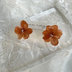no.234 再販 ブリックオレンジの紫陽花ピアス 本物のお花 オレンジ アジサイ パール ステンレス ピアス